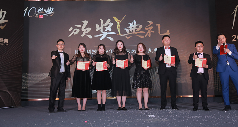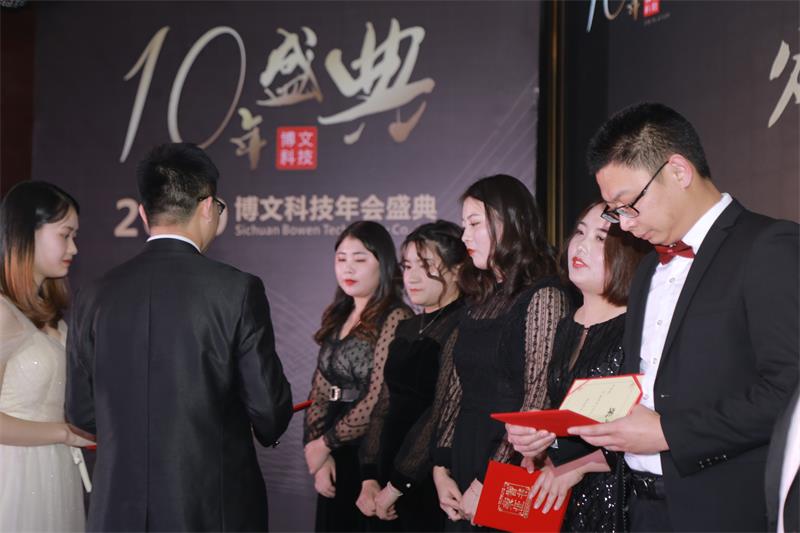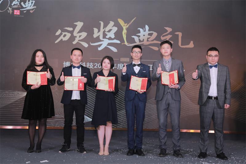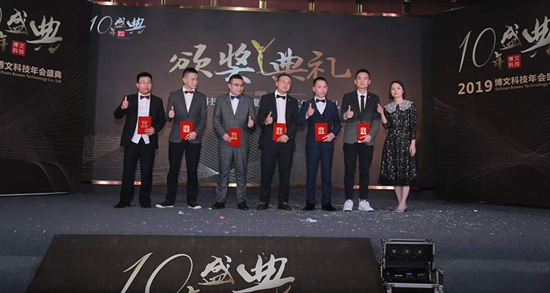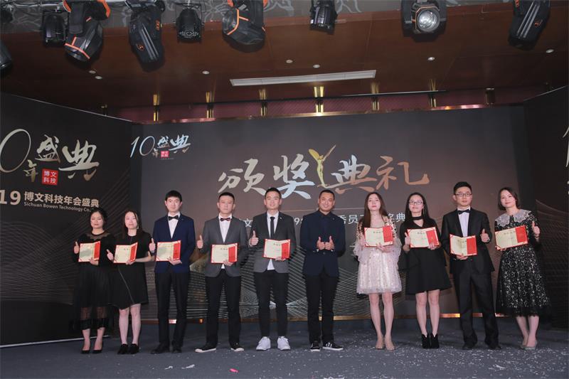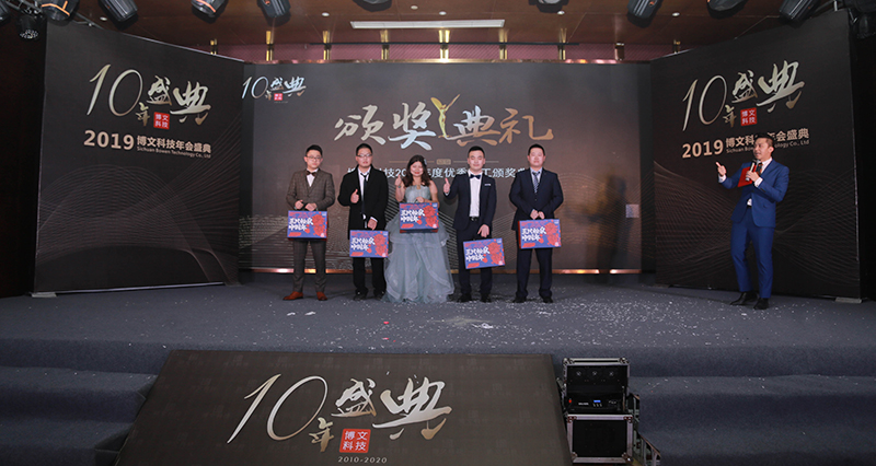 回顧2019年,我們感慨很多,收獲很多,博文今天的成績(jī)更離不開大家的努力付出,時(shí)至19年結(jié)束之際,我們對(duì)工作中具有突出業(yè)績(jī)表現(xiàn)的團(tuán)隊(duì)及個(gè)人給予獎(jiǎng)勵(lì)及表彰!榮耀時(shí)刻,獲獎(jiǎng)?wù)咝木w澎湃的走向舞臺(tái),接受大家的掌聲,他們?cè)谶@個(gè)榮耀的舞臺(tái)上代表著一份榮譽(yù)、一份勉勵(lì)、一份收獲,帶來了榜樣的力量。陳總更是在最后為與公司共同成長(zhǎng)10年的博文家人親自頒獎(jiǎng),這是一個(gè)約定,也是一段開始。